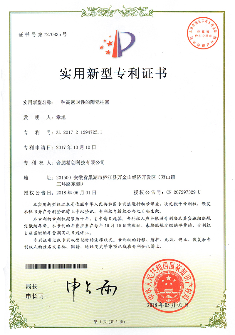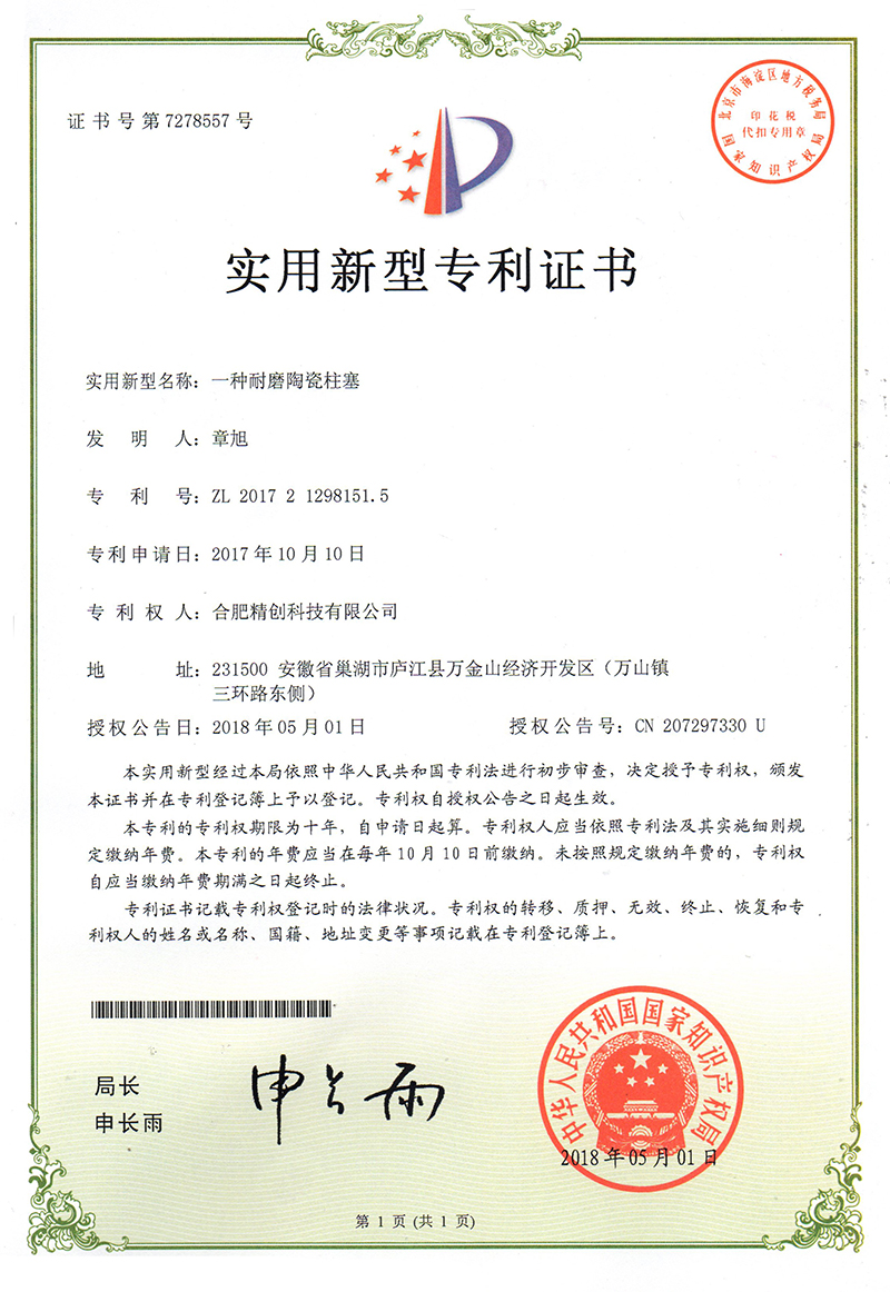 (2018實用新型)一種輕質(zhì)陶瓷柱塞