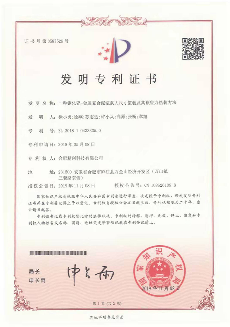(2018發(fā)明專利)一種鋼化瓷-金屬復合泥漿泵大尺寸缸套及其預應(yīng)力熱裝方法
